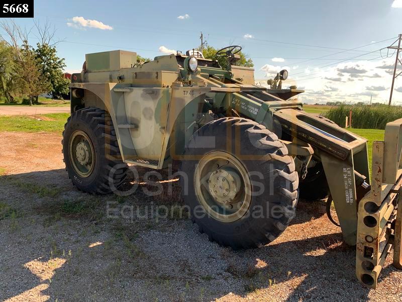 Fully Reconditioned Military Rough Terrain Forklift with 6,000 lb capacity, Four Wheel Drive, 3 Speed Transmission, Selectable Steering ( 2 Wheel, 4 Wheel, Crab) Fork Side-Shift, Full Machine Tilt, and Roll over Protection. Powered by a 4 cylinder Detroit Diesel 453. This unit has only seen 2029 hours of use. Fork tips are unworn and like new. These lifts are very user friendly and easy to operate. We have been using these machines at our facility for many years and they have proven to be very versatile and dependable.